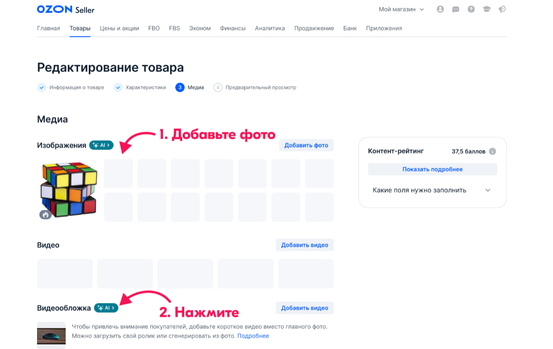 - Соотношение сторон: Рекомендуется использовать 3:4 или 9:16, чтобы видео занимало максимум экранного пространства в плитке товара.