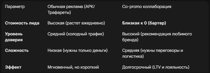 Совместные коллаборации (Co-promo) в 2026 году — это маркетинговая стратегия, основанная на объединении ресурсов двух и более неконкурирующих брендов со схожей целевой аудиторией. В эпоху сверхдорогого трафика Co-promo позволяет селлерам обмениваться «теплыми» клиентами, снижая стоимость привлечения (CAC) практически до нуля. Это переход от конкуренции за место в выдаче к синергии, где бренды усиливают друг друга через совместные наборы, вкладыши или взаимный пиар в социальных сетях.