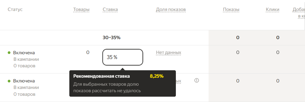 - Минимальный порог: Установка ставки на уровне 0,1% - 1%. Подходит для товаров с органическим спросом, чтобы просто «подсветить» карточку.