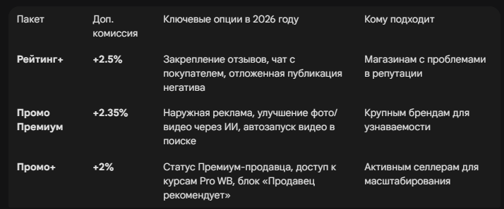 В 2026 году Wildberries предлагает три основных суперпакета, которые объединяют несколько инструментов со скидкой до 50% от их розничной цены.