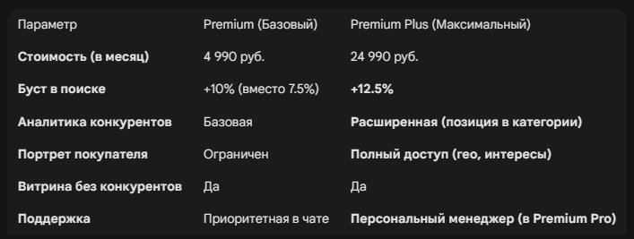 Защита витрины. Premium убирает блок рекомендаций конкурентов с вашей страницы магазина. Это критично, если вы вложились во внешний трафик. Зачем приводить клиента блогером, чтобы он увидел внизу товар конкурента на 10 рублей дешевле?