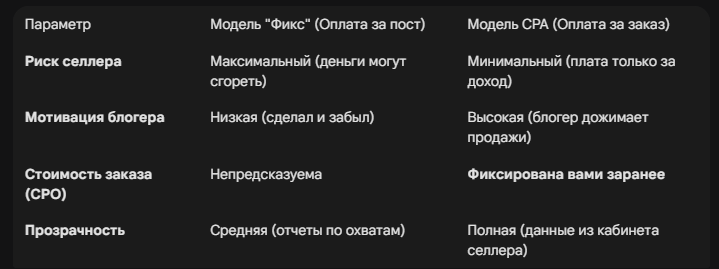 В чатах селлеров в начале 2026 года «фикс» (оплата за охват) считается пережитком прошлого и неоправданным риском. Рынок перенасыщен инфлюенсерами с накрученными охватами, которые не конвертируются в чеки.