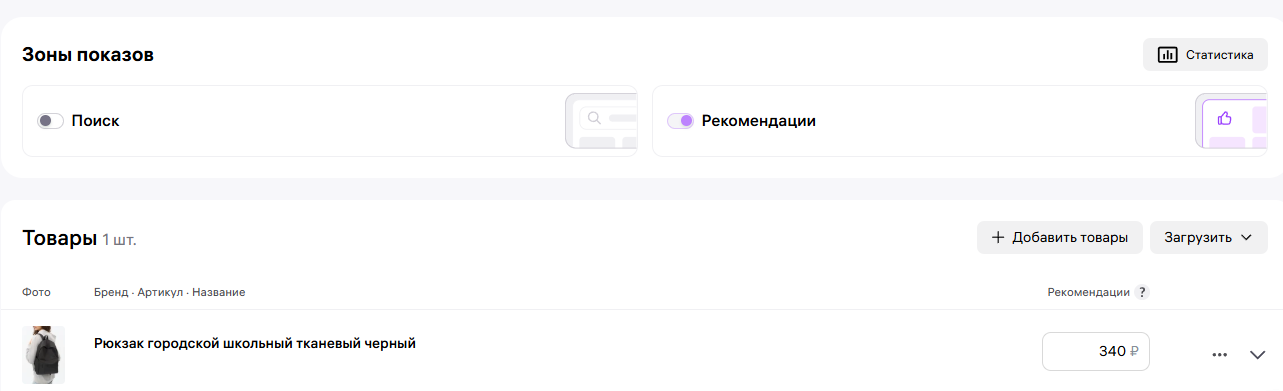 - Настройка ставок за категорию: Установите конкурентную ставку именно для показов в карточках. Часто она ниже, чем в поиске, но конверсия в корзину здесь может быть выше на 15–20%.