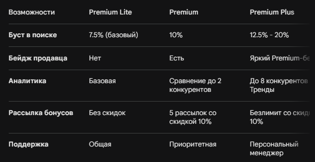 - Пример из практики: Селлер детской обуви (комиссия в апреле ~50%) подключил Premium Plus. Благодаря бусту в 20% и скрытию блока «Есть дешевле», он смог удержать цену на 5% выше рынка. За счет высокого CTR и экономии на Трафаретах (автоставки снизились из-за высокого органического буста), чистая прибыль магазина выросла на 15% за первый месяц, полностью окупив стоимость подписки в первую неделю.