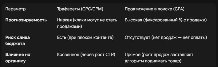 - Когда платите: Списание происходит только в момент, когда покупатель оформил заказ. Если клиент вернул товар, комиссия за продвижение возвращается на баланс селлера (за вычетом невозвратных логистических затрат).