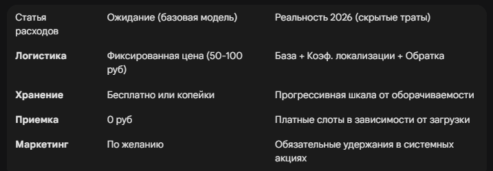 Народное решение из чатов: Бывалые игроки советуют внедрять «коэффициент неопределенности». Народный метод — всегда закладывайте в ЮЭ дополнительные 7-10% на «прочие расходы маркетплейса». В чатах пишут: «В 2026 году вы платите за всё: за приемку на переполненный склад, за хранение каждого кубического сантиметра, за возвраты и даже за участие в обязательных акциях. Если ваша финансовая модель не учитывает логистику "обратного пути" при возврате, вы торгуете в минус, даже не зная об этом».