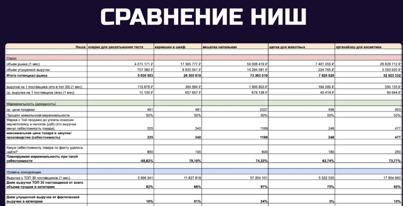 Она пришла с полного нуля, не понимая, на каком уровне и с каким товаром нужно начинать. Давайте вместе разберем, как она это делала с нашей поддержкой, инструкциями, обучением и так далее. Продавец получила правильную инструкцию-обучение для сравнения ниш, выбрала 30 товаров. Уже вместе с нашим индивидуальным куратором они обсудили, сравнили подобранные данные, и по многим показателям выявили, какая из ниш лучше всего, с меньшей конкуренцией, с большей доходностью, хорошей прибылью, отличным спросом и большим потенциалом. Именно за такими товарами мы охотимся вместе с вами, чтобы добиться сверхтоповых результатов.