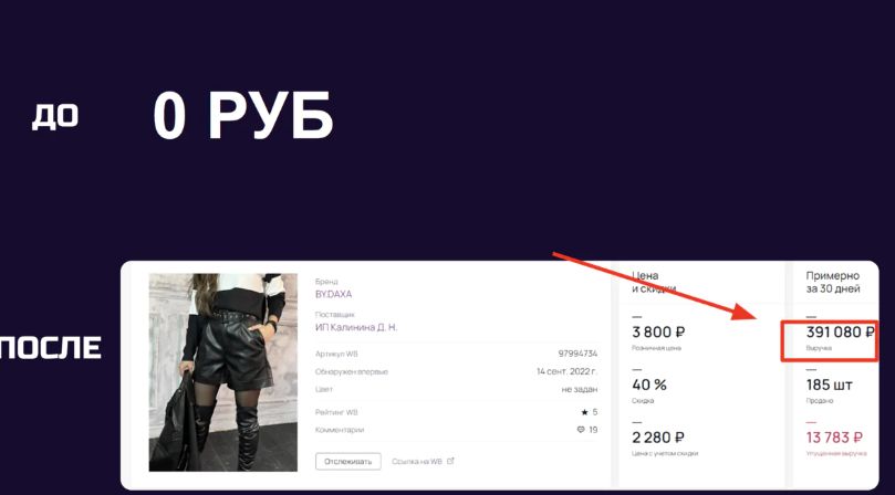 В этом кейсе вы познакомитесь с опытом нашего клиента, которая с абсолютного нуля (ДО нашего контакта) успешно запустила товар, кожаные шорты. И ПОСЛЕ этого делает по ₽ 400 тыс. выручки.