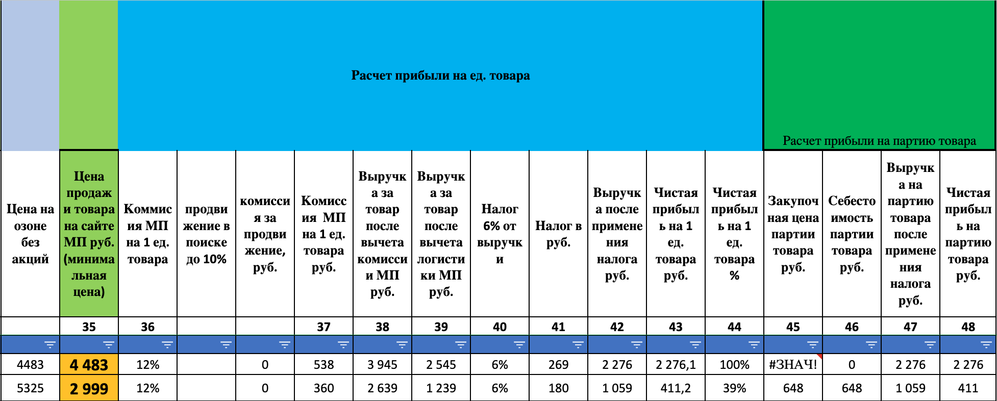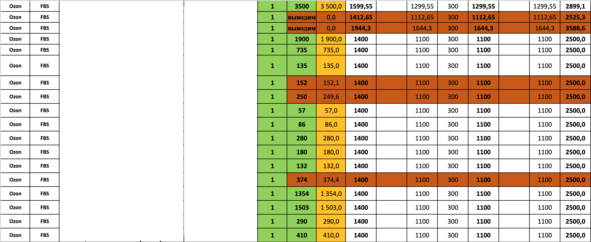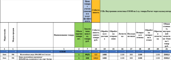 Проанализировали 309 обычных и 123 круптогабаритных товара. Не хочу заваливать вас цифрами, вместо этого поделюсь табличкой (киллометровой😅), в которой указано, какие параметры учитываются при расчете unit-экономики. В данном случае при работе по модели FBS.