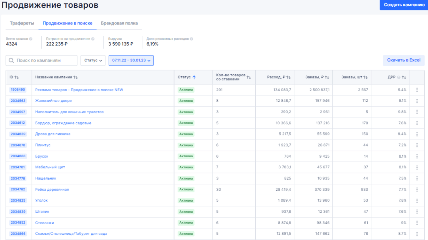 За 3 месяца, с ноября по конец января, потратили 222 235 рублей, ДРР (доля рекламных расходов) не превышала 6,2%. Для клиента было особенно важно, чтобы последняя метрика укладывалась в 10%.