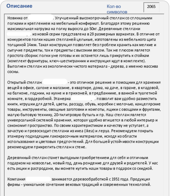 Описание одного из товаров до SEO-оптимизации. Хороший текст с точки зрения полезности и информативности