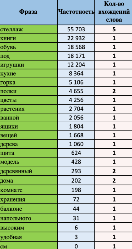 Но в описании упущена часть ключевых слов. Они выделены красным в таблице на скриншоте